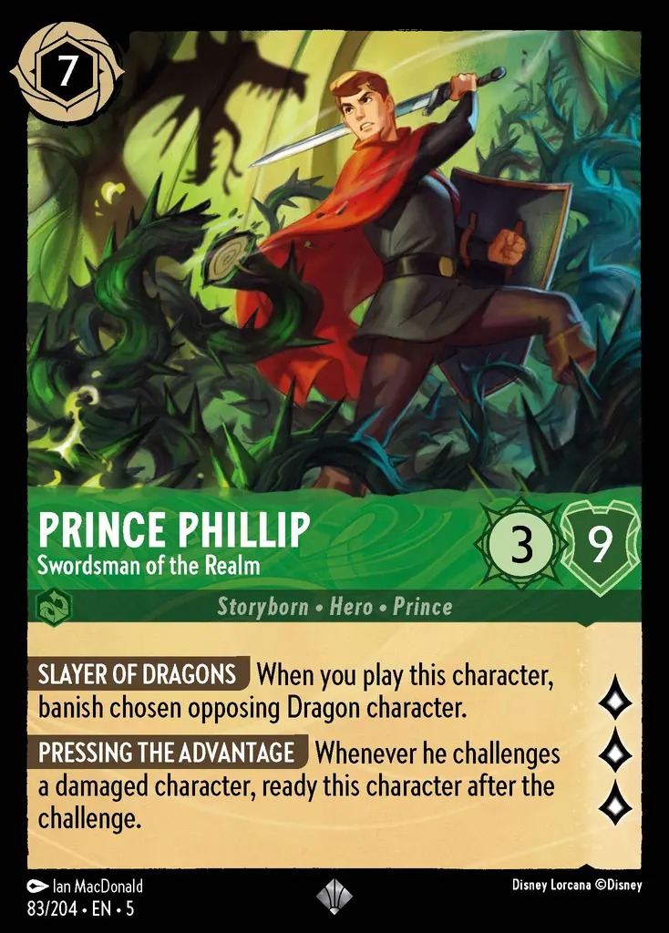 Our very first legendary and Prince Naveen is a card to play out a 6 costed song early on. You essentially get to play a 6 cost or less song for free when you play him and he also provides 2 lore, so fitting him in a right deck makes him a good card overall.