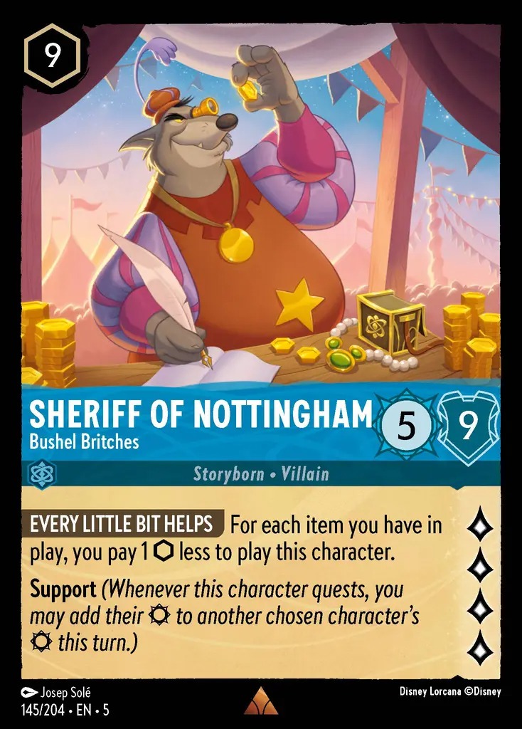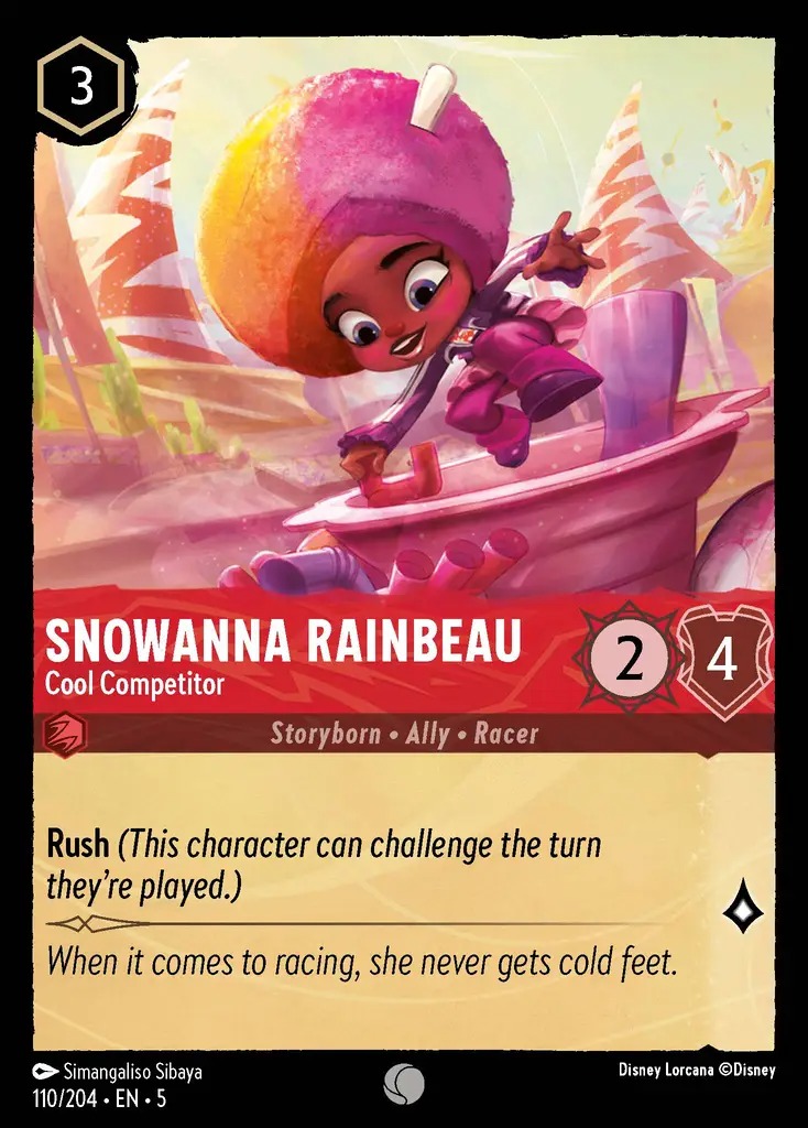 Slighting higher cost Vanellope but allows you to reduce an opposing character’s strength. I think 2 drops is a bit expensive for that and she only has 1 lore.