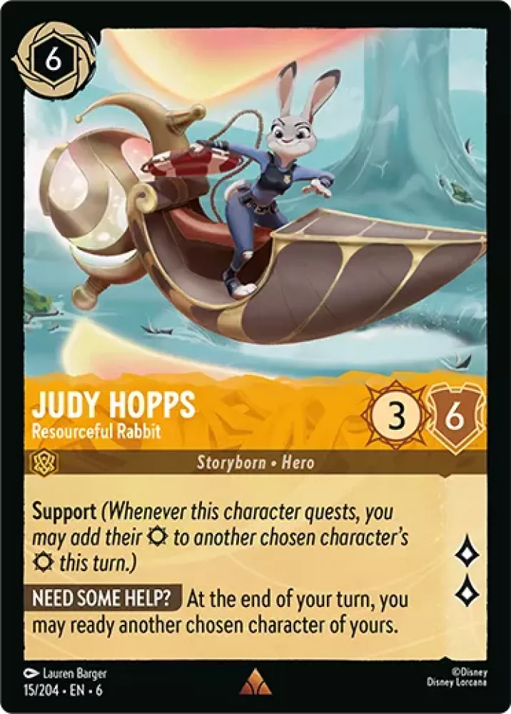 Judy Hopps is a late game card for Amber. She can Support and also helps to ready a character every turn so they are not vulnerable to challenges. Maybe 1 copy is enough if you really want to make use if her.