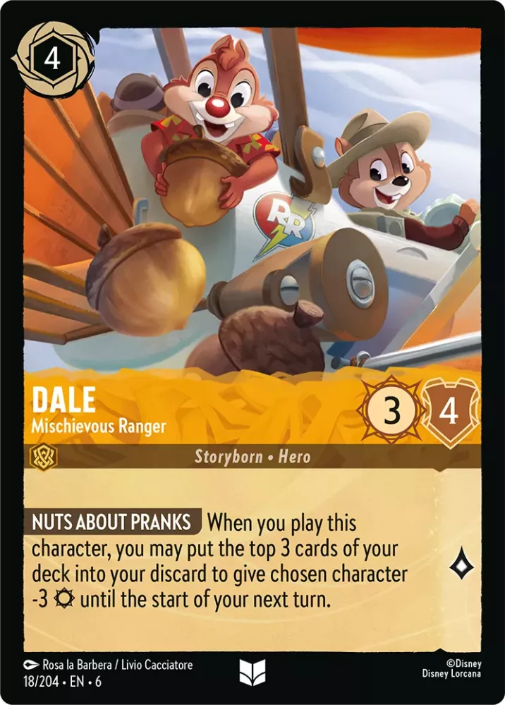 Dale requires you to play Chip first, unless you are okay to exert it. 3 drop to provide 2 lore and very high stats is worth consideration. Not the best use of 3 cost but not the worst as well.