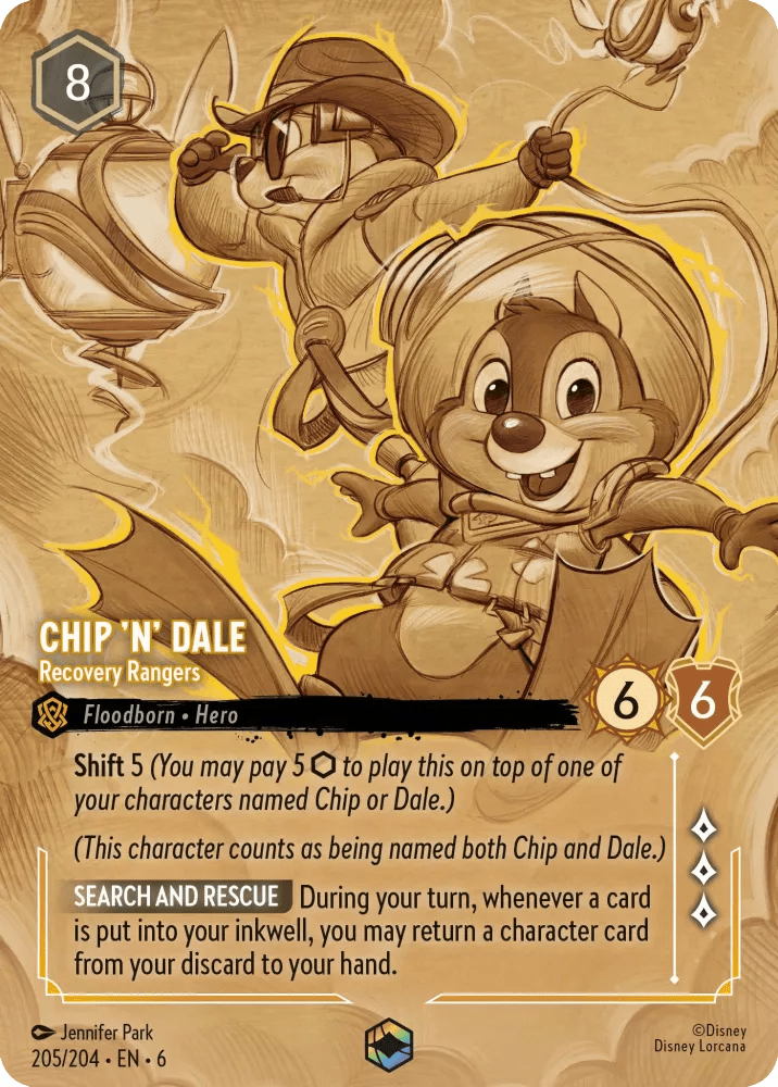 Playing Chip and Dale isn’t so bad if you can shift into this! Every turn when you ink you can retrieve back a card from your discard pile. They also have very high Strength and Willpower and gives you 3 lore. Uninkable so many not 4 copies in any deck.