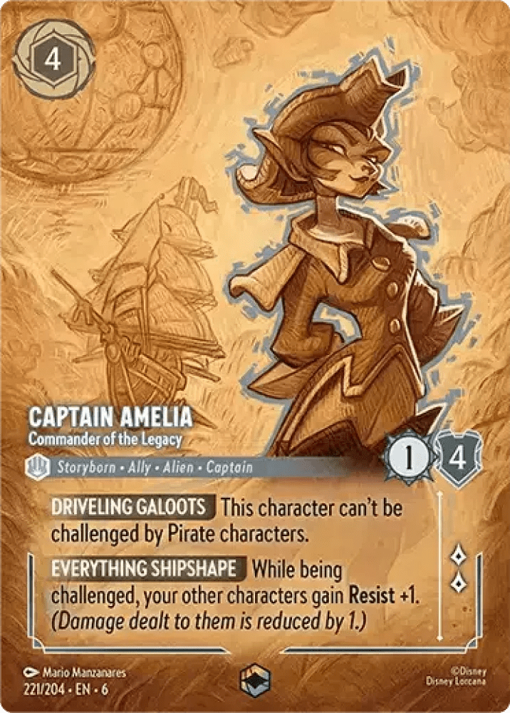 Amelia is a pirate support, decent stats overall, she gives Resist to your other characters too so that can be something to make them more sturdy against challenges. Inkable and 2 lore so might fit into some decks.
