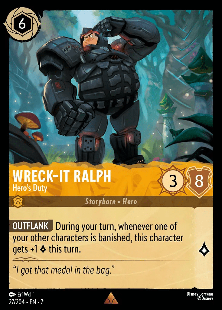 Ralph is expensive, and it requires your characters to be banished on your turn to get extra lore. So it doesn’t synergize well with the Rush mechanic.