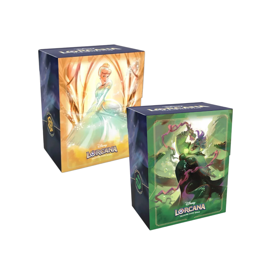 2 deck boxes, with Cinderella Ballroom Sensation and Ursula Deceiver of All Enchanted art! Each is priced at SGD7 MSRP.