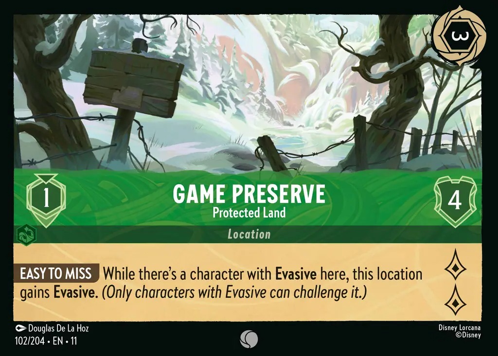 An excellent evasive location. Place an evasive character here and the location itself gains Evasive, letting you sneak in 2 lore every turn. Very easy condition to meet and surprisingly hard to interact against.